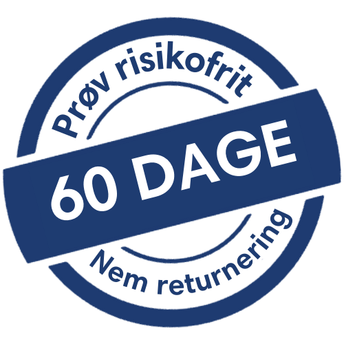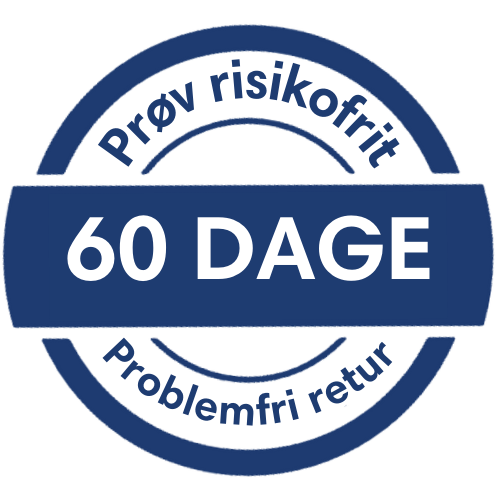 Vi tilbyder 60 dages fuld tilfredshedsgaranti. Det betyder, at du kan prøve produktet derhjemme i ro og mag – og hvis du ikke er tilfreds, kan du sende det retur og få dine penge tilbage.